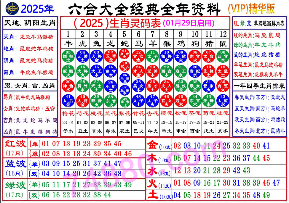 五行 (每年按立春后开始变化号码)